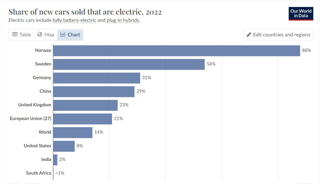 India lags behind at 2 percent. The U.S., although only at 8 percent, has increased from 2 percent in 2020. One challenge to electric car adoption in the U.S., as we noted last week, is our inability to build. The Inflation Reduction Act included $7.5 billion to build tens of thousands of electric vehicle chargers across the country. Two years later not a single charger has been installed because of America’s broken regulatory system and sclerotic bureaucracy. That’s what American conservatives should be booing.